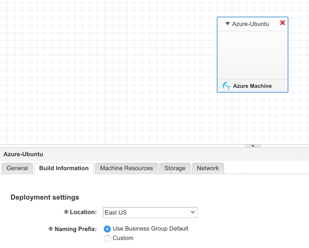 On the Build Information tab you’ll need to add quite a bit of information. The first of which is the Location in which the machine will be deployed as well as how we’ll name the machine.