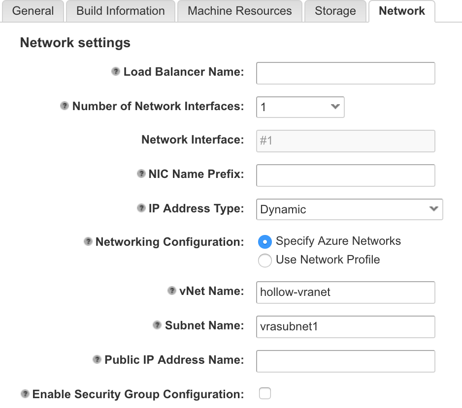 The Network tab lets you specify the VNet, Subnet and additional networking information for the virtual machine. Fill out the desired configuration and save the blueprint.